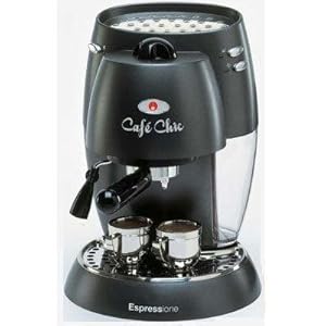 CAFÉ CHIC Cappuccino Maker / equipped with a high pressure safety valve and a self priming pump, cup warmer, powerful Maxi cappuccino milk frothing device, high quality push buttons and on/off light indicators make the espresso brewing experience easy and practical for every coffee lover. Works with ESE pods and ground coffee. Comes with two portafilters.
